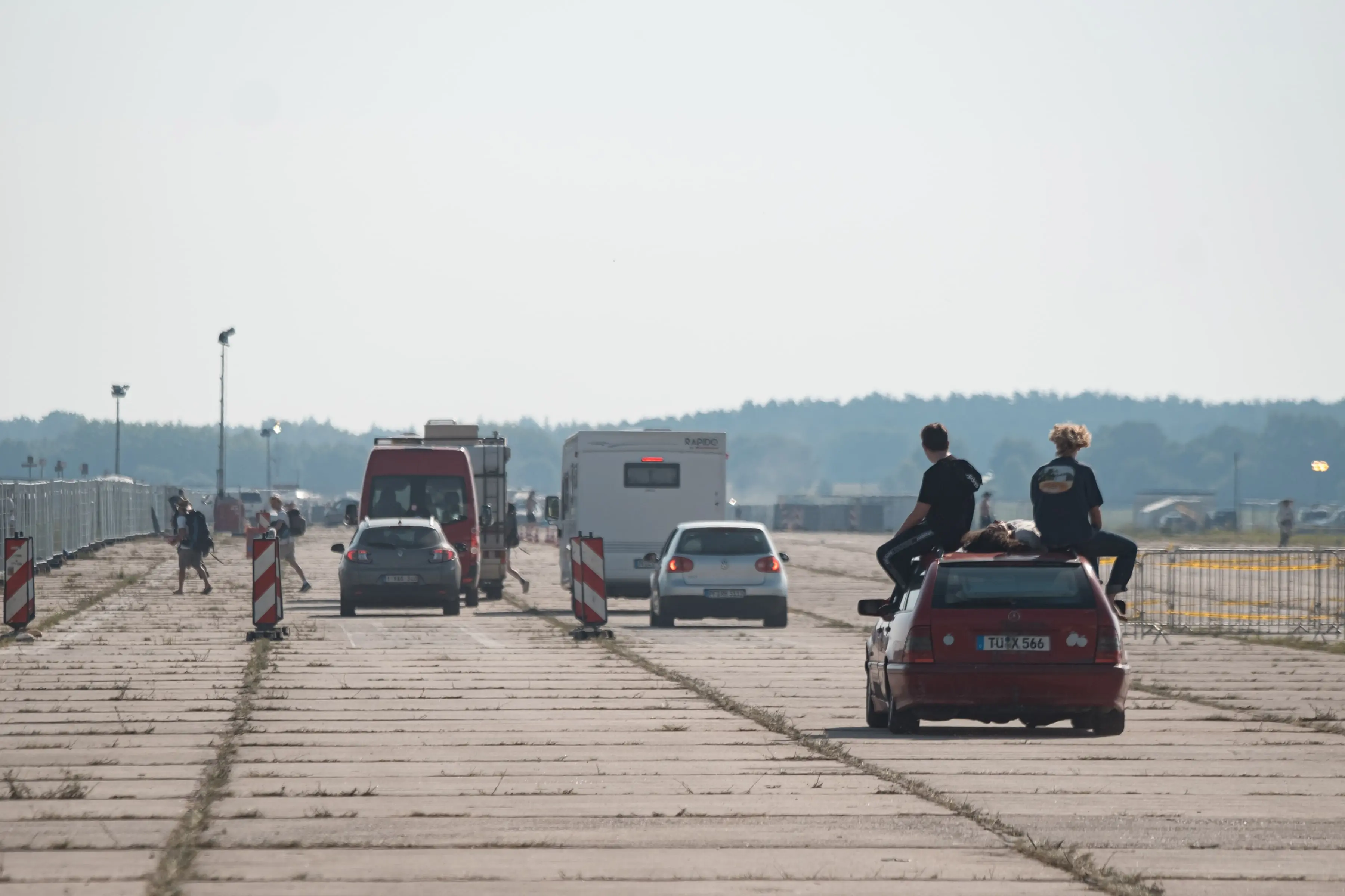 Das Veranstaltungsgelände ist bei schwerem Sturm und Hagel nicht sicher! Leistet den Anweisungen der Ordner:innen Folge, begebt euch zu den Zeltplätzen und in eure Autos. Bitte lasst andere, die Schutz suchen, mit ins Auto. Macht den Warnblinker an, um anderen zu signalisieren, dass bei euch noch Platz ist. Versucht nicht mit euren Fahrzeugen das Gelände zu verlassen und haltet die Rettungswege frei. Wenn‘s vorbei ist, geht die Musik auch wieder an und wir feiern weiter. Der sicherste Ort bei Blitzschlag ist in einem Auto, der unsicherste auf einem Hangar. Klingt banal, ist es auch. Dennoch wird diese kleine Regel von einigen immer wieder vergessen.
